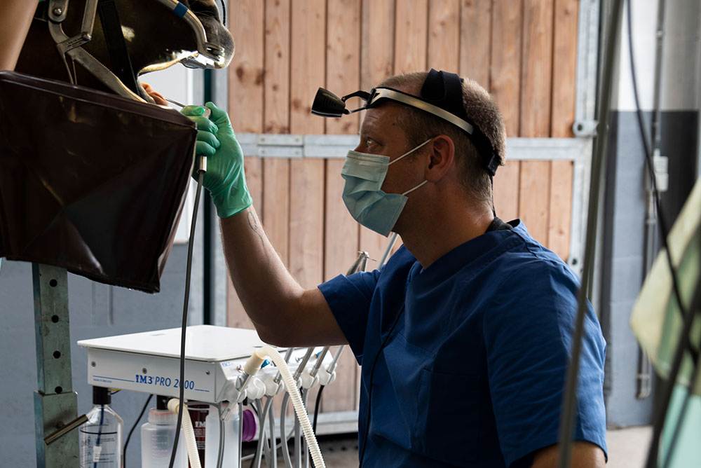 Chaque cheval devrait être contrôlé tout les 6 à 12 mois pour détecter de façon précoce les pathologies débutantes des dents, des structures avoisinantes et de la cavité orale dans son ensemble. De nombreux problèmes mineurs peuvent être corrigés immédiatement dans d’autres cas nous pourrons vous conseiller et effectuer un traitement plus avancé pour empêcher la pathologie de se développer de façon plus importante.